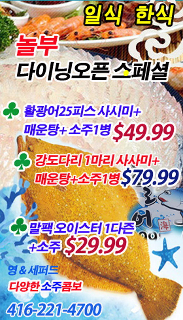 토론토에서 활어회를 새벽3시 까지. 맛있게 먹을 수 있는
