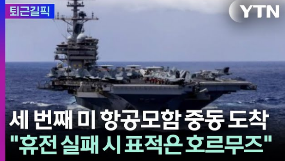 세 번째 미 항공모함 중동 도착. "휴전 실패 시 첫 번째 표적은 호르무즈"